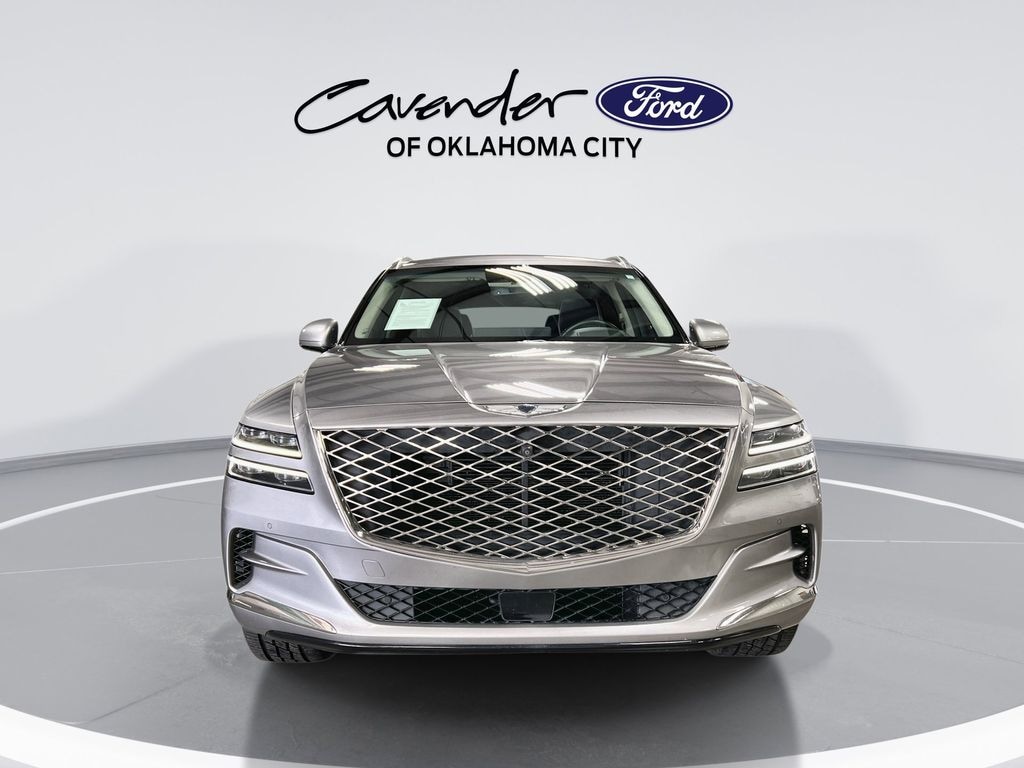 Features: Advanced Package 06 (3-Zone Climate, Active Motion Seat, Blind-Spot View Monitor, Heads-Up Display, Heated 2nd Row Seats, Lexicon Premium Audio w/21-Speakers, Option Group 06, Power Driver Seat Bolster & Cushion Extension, Rear Parking Collision-Avoidance Assist, Remote Smart Parking Assist, and Surround View Monitor), Navigation System, Power moonroof, 12 Speakers, 3.909 Axle Ratio, 4-Wheel Disc Brakes, ABS brakes, Adaptive suspension, Air Conditioning, Alloy wheels, AM/FM radio: SiriusXM, Android Auto & Apple CarPlay, Anti-whiplash front head restraints, Auto High-beam Headlights, Auto tilt-away steering wheel, Auto-dimming door mirrors, Auto-dimming Rear-View mirror, Automatic temperature control, Brake assist, Bumpers: body-color, Compass, Delay-off headlights, Driver door bin, Driver vanity mirror, Dual front impact airbags, Dual front side impact airbags, Electronic Stability Control, Emergency communication system: Genesis Connected Services, Exterior Parking Camera Rear, Four wheel independent suspension, Front anti-roll bar, Front Bucket Seats, Front Center Armrest, Front dual zone A/C, Front reading lights, Fully automatic headlights, Garage door transmitter: HomeLink, Genuine wood console insert, Genuine wood dashboard insert, Genuine wood door panel insert, Heated & Ventilated Front Bucket Seats, Heated door mirrors, Heated front seats, Heated steering wheel, Illuminated entry, Knee airbag, Leather Seating Surfaces, Leather steering wheel, Leatherette Seating Surfaces, Low tire pressure warning, Memory seat, Occupant sensing airbag, Outside temperature display, Overhead airbag, Overhead console, Panic alarm, Passenger door bin, Passenger vanity mirror, Power door mirrors, Power driver seat, Power Liftgate, Power passenger seat, Power steering, Power windows, Radio data system, Radio: AM/FM/SiriusXM/HD Premium Audio System, Rain sensing wipers, Rear air conditioning, Rear anti-roll bar, Rear reading lights, Rear seat center armrest, Rear side impact airbag, Rear window defroster, Rear window wiper, Remote keyless entry, Security system, Speed control, Speed-sensing steering, Speed-Sensitive Wipers, Split folding rear seat, Spoiler, Steering wheel memory, Steering wheel mounted audio controls, Tachometer, Telescoping steering wheel, Tilt steering wheel, Traction control, Trip computer, Turn signal indicator mirrors, Variably intermittent wipers, Ventilated front seats, and Wheels: 20" x 8.5J Alloy.